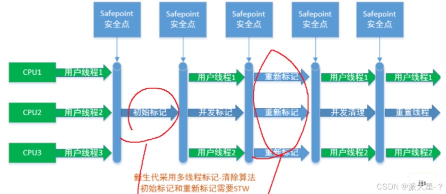 CMS涉及理念,把整个GC过程拆分成多个阶段,能和业务线程并发运行的。就尽量并发减少STW时间。