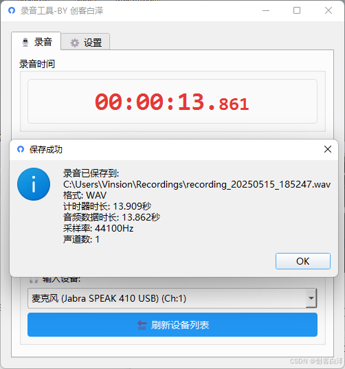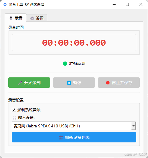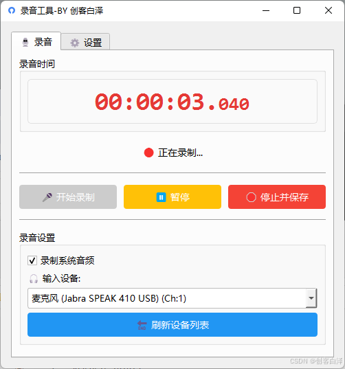 在当今数字化时代,音频录制工具已经成为内容创作者、会议记录者和音乐爱好者的必备工具。本文将详细介绍如何使用Python的PyQt6库开发一款功能全面、界面美观的桌面录音工具。这款工具不仅支持常规麦克风输入,还能录制系统音频,并提供了丰富的设置选项和精美的用户界面。