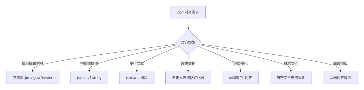 文本对齐是提升数据可读性和专业性的核心技术。通过掌握从基础字符串方法到高级排版算法的完整技术栈,结合表格生成、日志美化等工程实践,您将能够创建专业级的数据展示系统。遵循本文的最佳实践,将使您的文本输出在各种场景下都保持清晰、专业和高效。