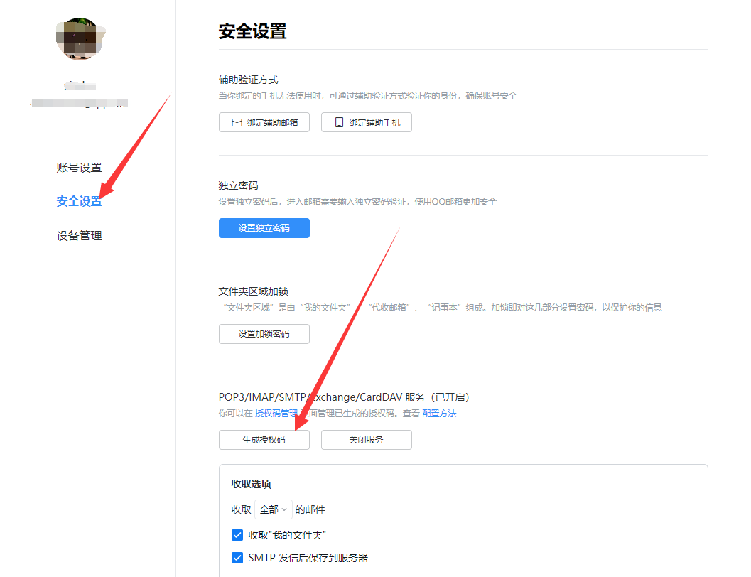 注意:QQ 邮箱等部分邮箱不支持直接使用登录密码,需启用“POP3/SMTP服务”并获取专用授权码。