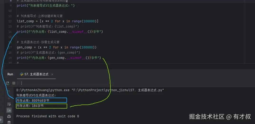 2. 生成器表达式:类似列表推导式,但用圆括号