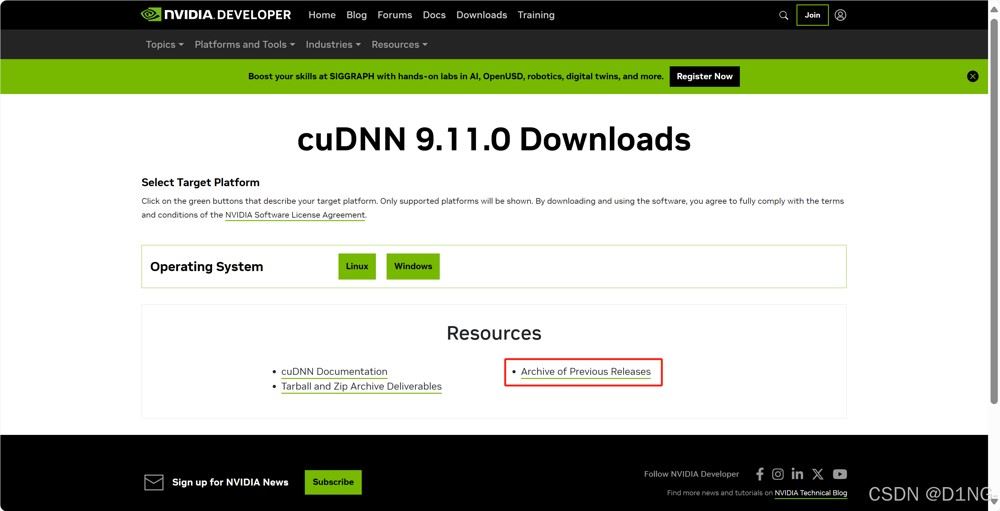 1.找到nvida cudnn下载官网,并点击archive of previous release