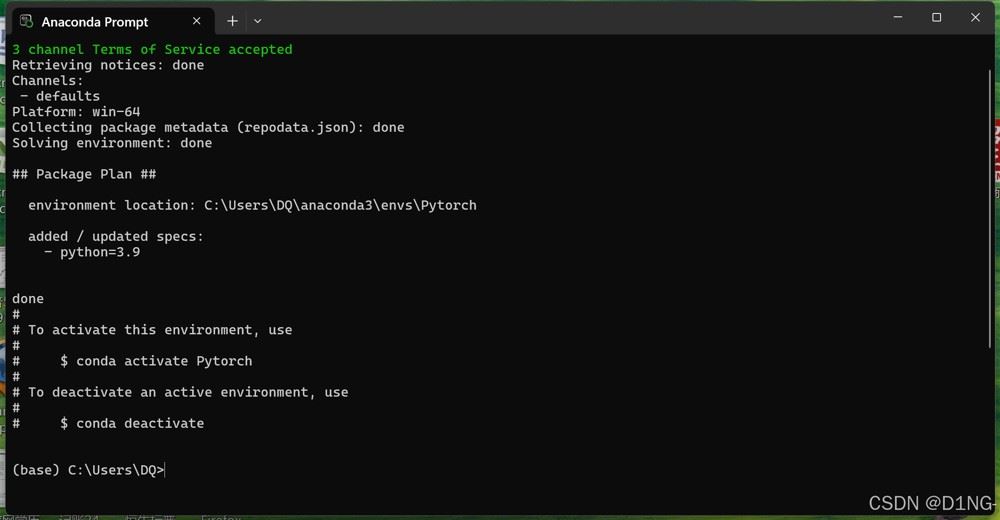 打开Anaconda Prompt之后输入Conda Create -n Pytorch python=3.9