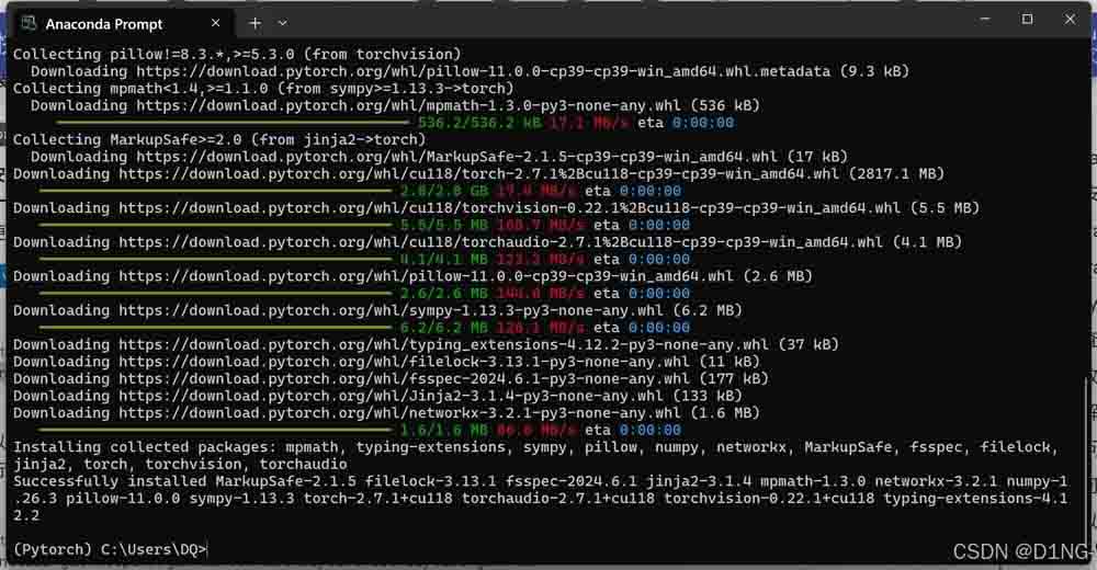 2.在环境创建完成之后输入Conda activate Pytorch激活环境
