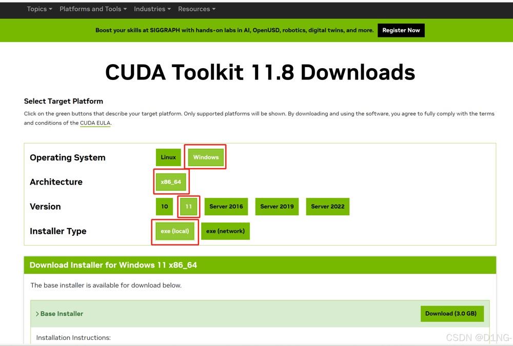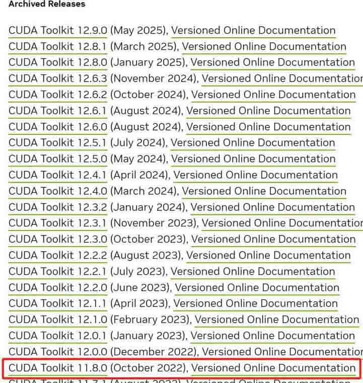 2. 进入nvidia cuda下载页面CUDA Toolkit Archive | NVIDIA Developer, 这里选择cuda 11.8版本