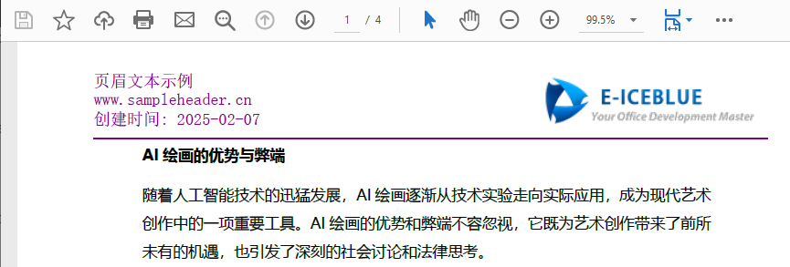 通过以上步骤,我们可以轻松地在 PDF 文档中添加页眉和页脚,无论是公司 logo、标题、页码,还是日期和版权信息,都能实现高度自定义。借助 Spire.PDF 的绘图功能,你不仅能精确控制元素位置和样式,还能保持整份文档的排版一致性与专业外观。掌握这些方法后,你就能让生成的 PDF 更具结构化与品牌感,为报告、合同或技术文档增添专业水准。