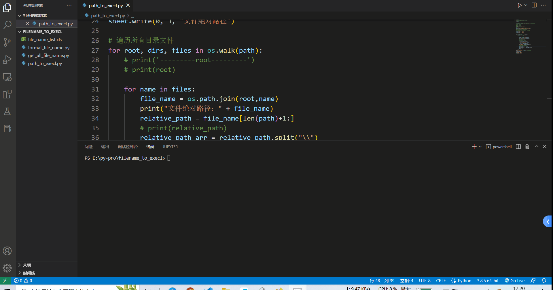 Python实现把一个文件夹下所有的文件名和绝对路径存入execl表格