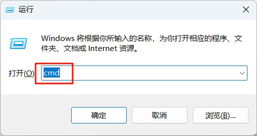 10.按下键盘上的“Win”+“R”键,唤起“运行”窗口,输入“cmd”,然后按回车