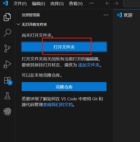 1.打开VS Code,点击“打开文件夹”,选择一个文件夹作为Python工作目录