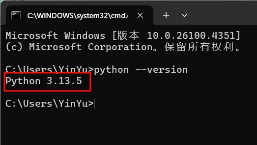 11.在命令行工具中输入“python --version”,然后回车。可以看到安装的Python版本即安装成功
