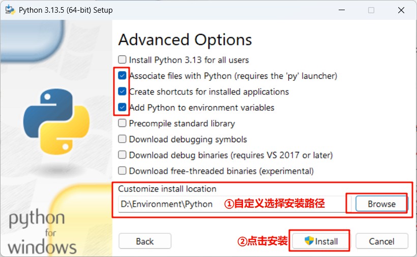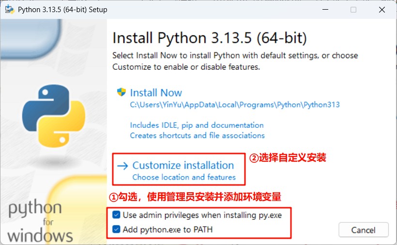 5.勾选下边两项,并选择“Customize installation”自定义安装