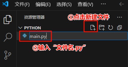 3.在工程目录下点击“新建文件”按钮,在下方输入文件名称,文件类型为“.py”