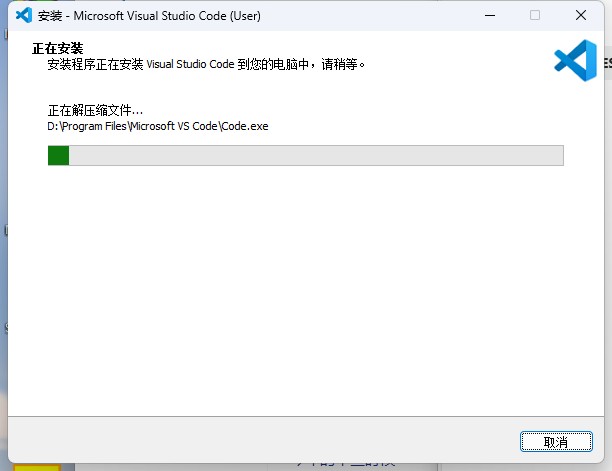 3.双击运行“VSCodeeUserSetup-x64.exe”安装程序