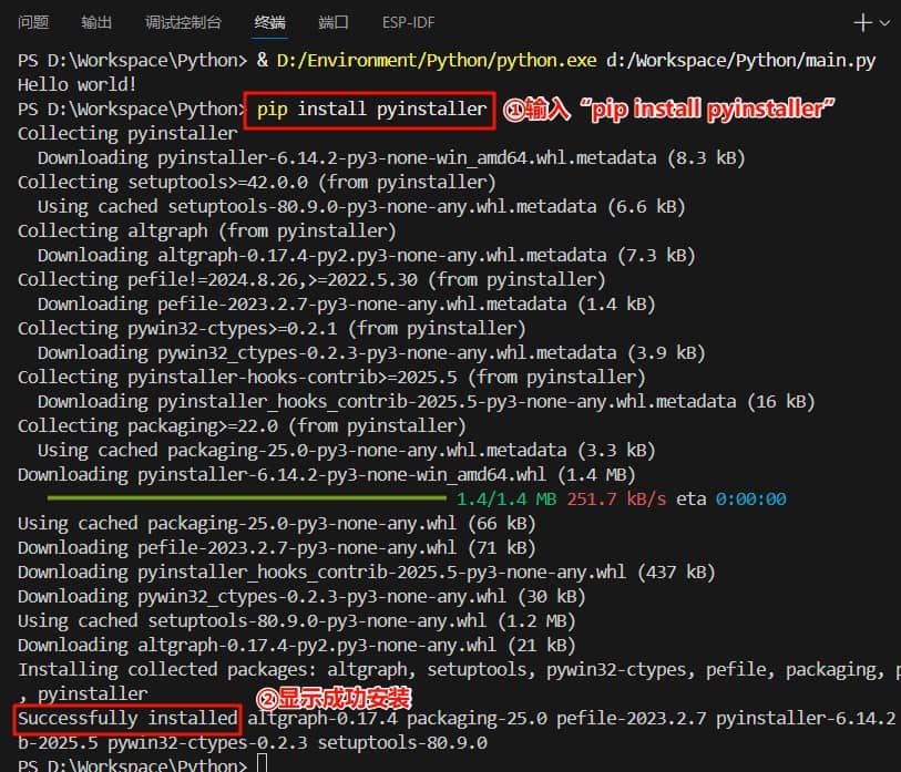 1.安装“pyinstaller”,在终端窗口输入“pip install pyinstaller”