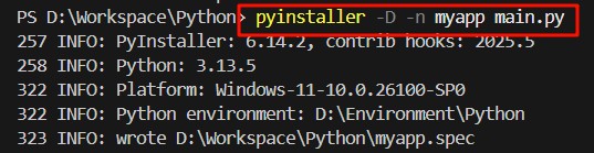 🏷️-D:生成一个目录,包含依赖项文件夹及可执行程序。该目录下的子目录包含大量.dll文件和.pyz文件,其依赖项等均在子目录,不集成在exe里,所以exe不能单独执行(需要带着子目录一起才能运行)
