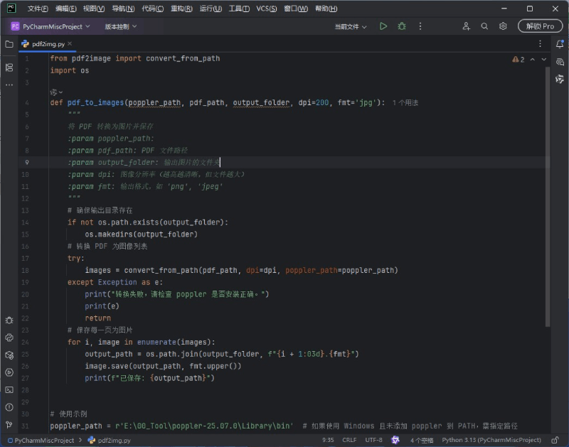pdf2image: 用于将 PDF 转换为图像。Pillow(PIL): 用于图像处理和保存。