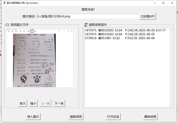 最近,有网友说,他一天要处理很多100多份订单截图,提取其中的发货单号、车号、净重、品种、出厂日期等,并存入到Excel文件当中。普通的人工录入太慢,电脑OCR识图又不太准确,还要来回复制粘贴,非常的麻烦,而且耗时耗力。因此,他想编写一个批量处理工具,实现批量化操作订单截图,自动提取指定信息,然后可以转到Excel里。