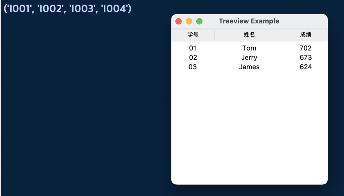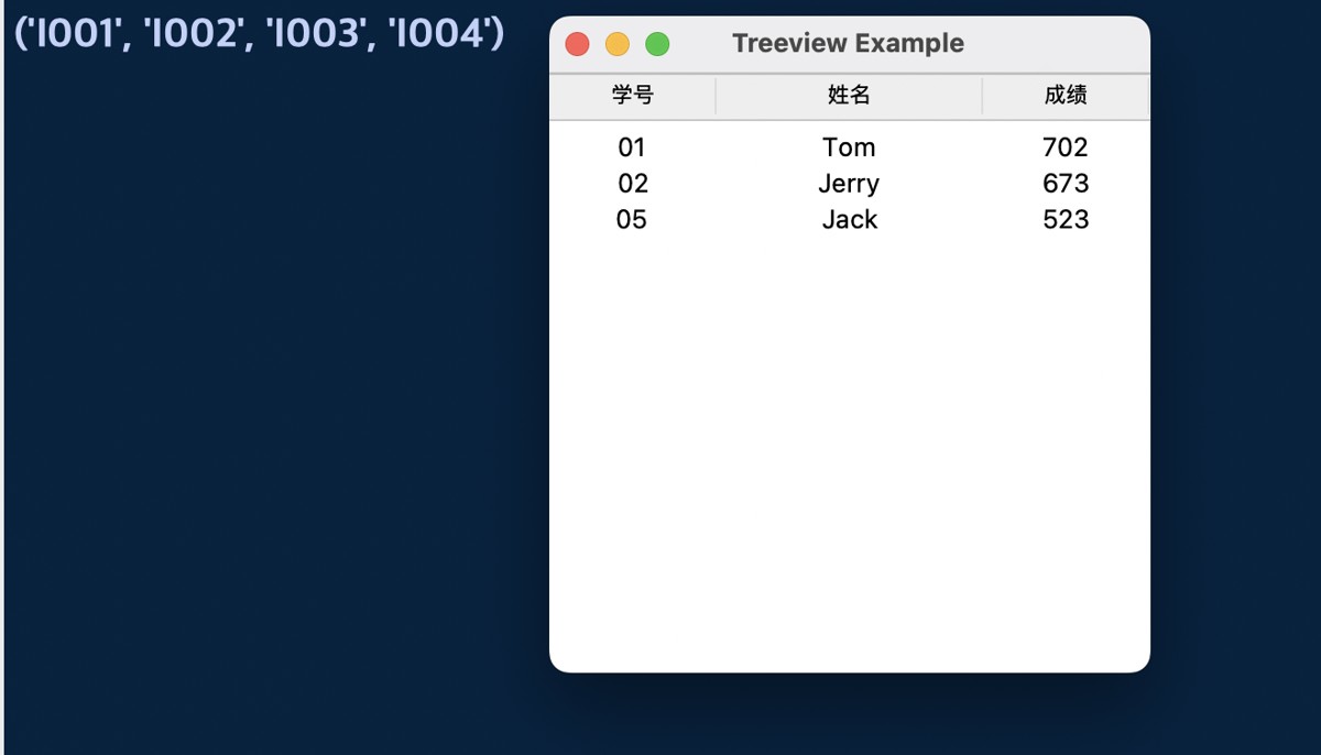 tree.item(modified_item, values = ("05", "Jack", 523))运行结果:
