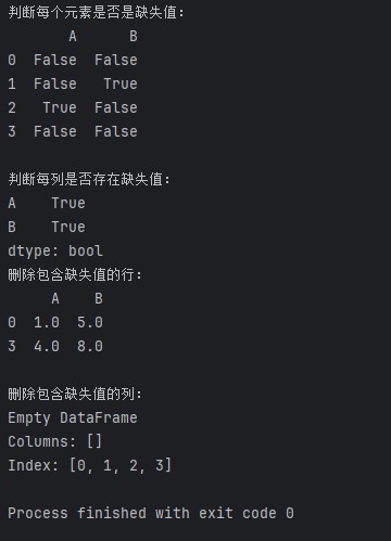 isnull()函数可以判断数据中的缺失值,any()函数可以判断每列是否存在缺失值。 - 删除空值: