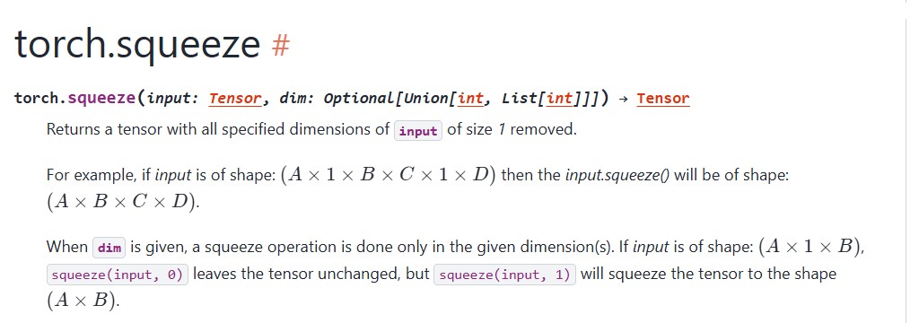如果指定了 dim 参数,则只会在那个维度上去除大小为 1 的维度。