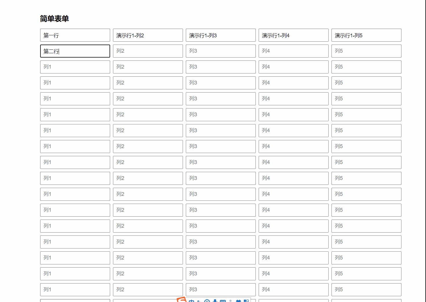 列数:前 5 列有效;若不足 5 列则空位自动补齐为“演示行X-列Y”。