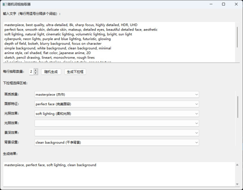 程序能够自动识别提示词类型,并为每个下拉框添加有意义的分类标签: