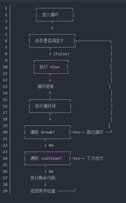 break | 找到目标、满足退出条件 | 会跳过 else |