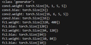 对于Lenet-5模型进行打印,可以看到state_dict()的类型为 <class 'collections.OrderedDict'>,各层名称及参数尺寸如下图所示。