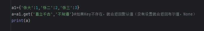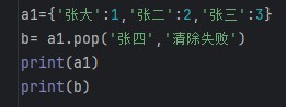 3.使用pop还可以增加默认值(如果删除不存在的键值,就会报错,加默认值就不会了)