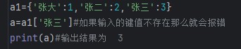 4.不克持下标:字典中的元素不能通过下标取值。