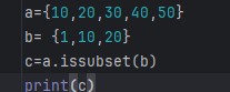 - 集合A.issuperset(集合B)作用:判断集合A是否是集合B的超集,集合A是否包含集合B中的所有元素 包含就返回True反之 返回值:布尔值