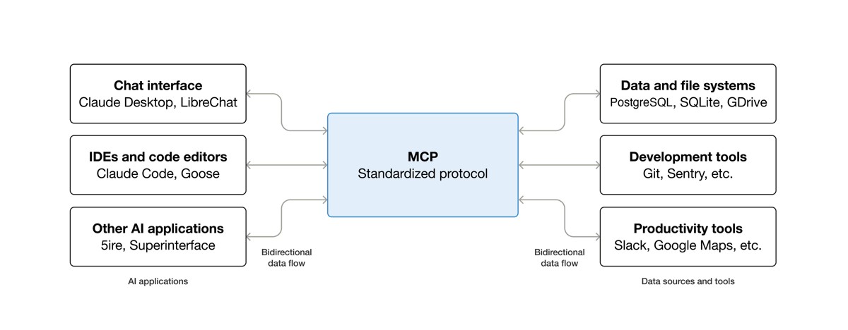 AI应用或智能体: MCP让它们能接入一整个生态系统的数据源、工具和应用,功能更强大,用户体验也更好