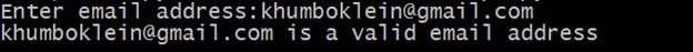 系统将提示你输入电子邮件地址,如果电子邮件地址有效,输出将如下所示: