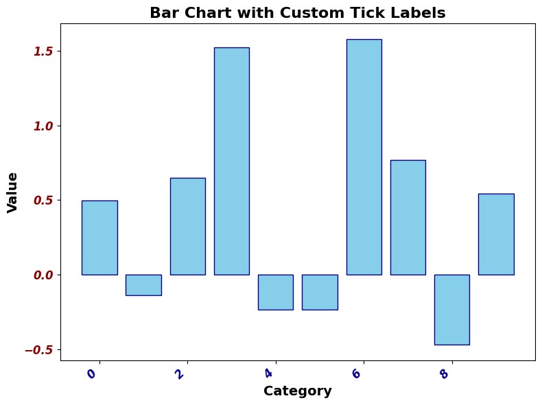 ax.set_title('Bar Chart with Custom Tick Labels', fontsize=16, fontweight='bold')
