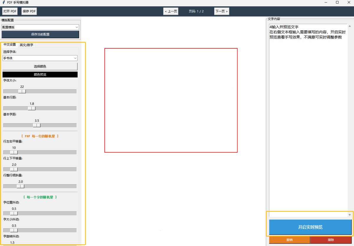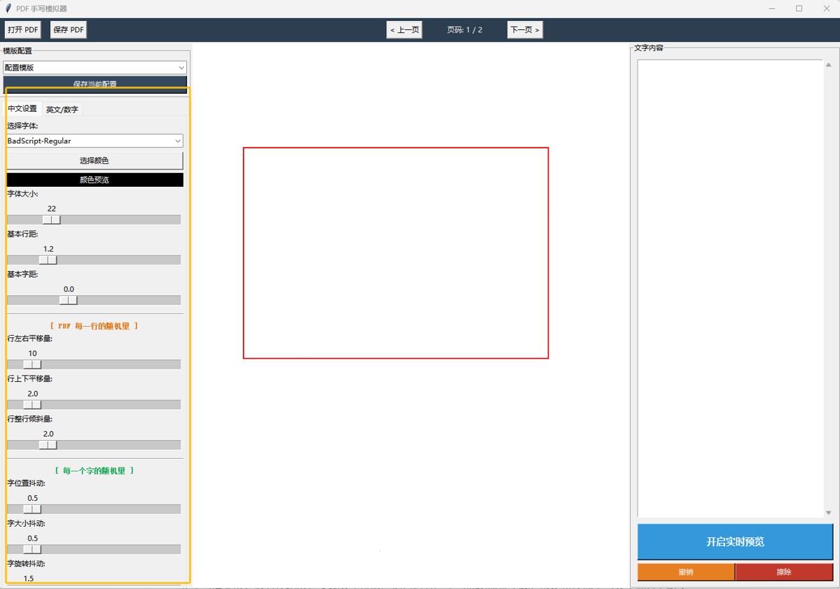 为了偷懒,博主开发了一款基于python的PDF手写模拟器,它能够模拟真实手写笔迹,将电脑上的文字批量填充到 PDF 指定区域,支持中文/英文分开配置、手写扰动效果自定义、配置模版复用等功能,生成的效果高度贴近真实手写,帮你彻底告别手动抄写的烦恼。首先来个界面以及效果预览: