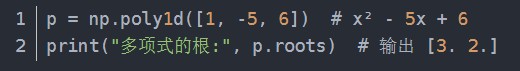 p_roots = np.poly1d([1, -5, 6]) # 多项式x² -5x +6