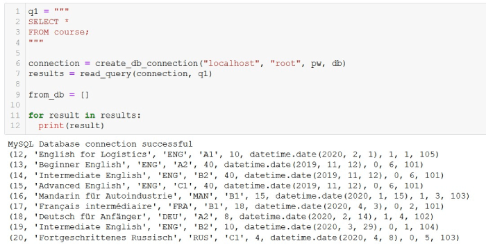 connection = pymysql.connect(host='localhost', user='user', password='password', db='db_name')