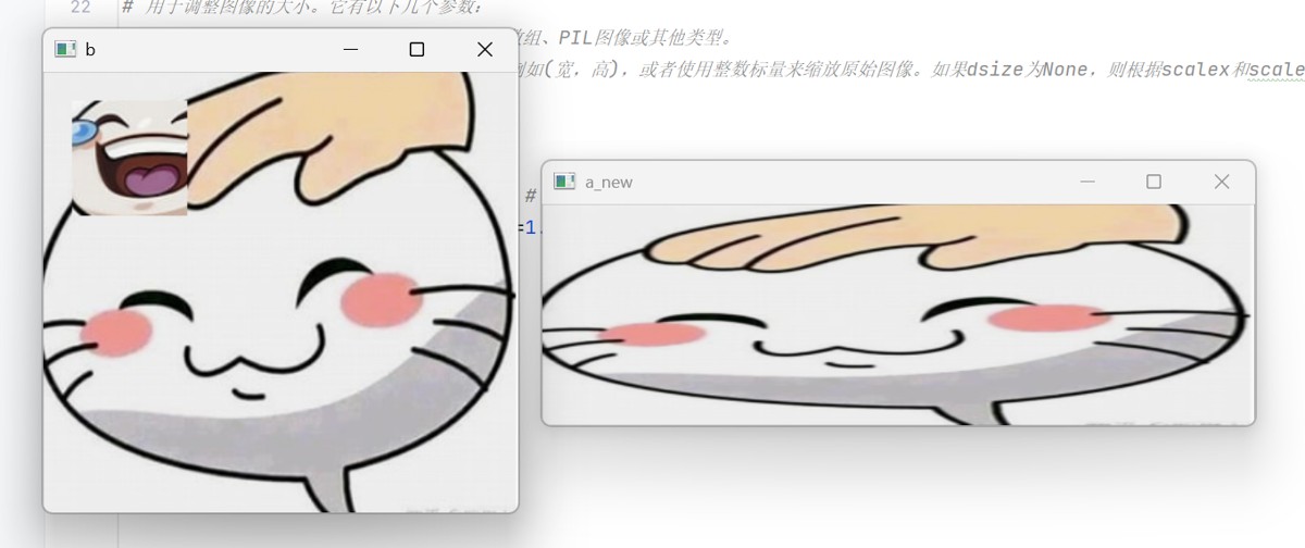 # dsize:输出图像的大小,可以是一个元组,例如(宽,高),或者使用整数标量来缩放原始图像。如果dsize为None,则根据scalex和scaley