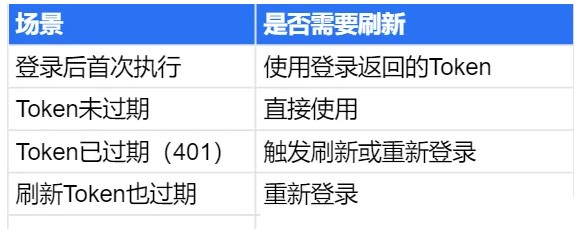 例如:大多数基于Token的认证机制(如JWT、OAuth2)都会为Token设置一个有效期(例如30分钟、2小时等)。一旦Token过期,接口就会返回401 Unauthorized错误,导致测试用例失败。这会导致测试的连续性和稳定性,影响测试效率,也会影响自动化测试模拟用户真实行为(如用户会在Token过期后通过刷新Token或重新登录来继续操作)。