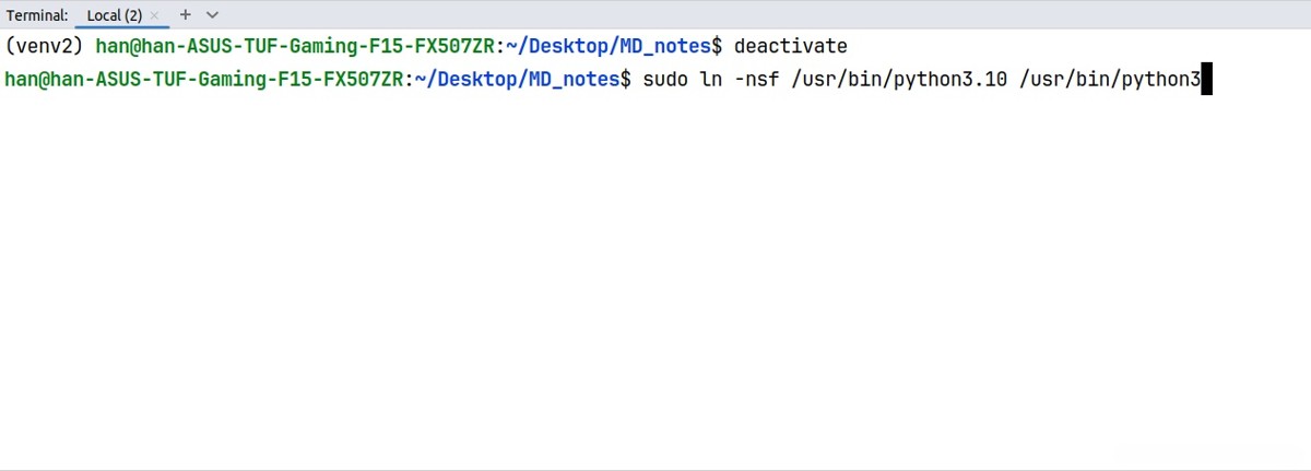 sudo ln -snf /usr/bin/python3.10 /usr/bin/python3
