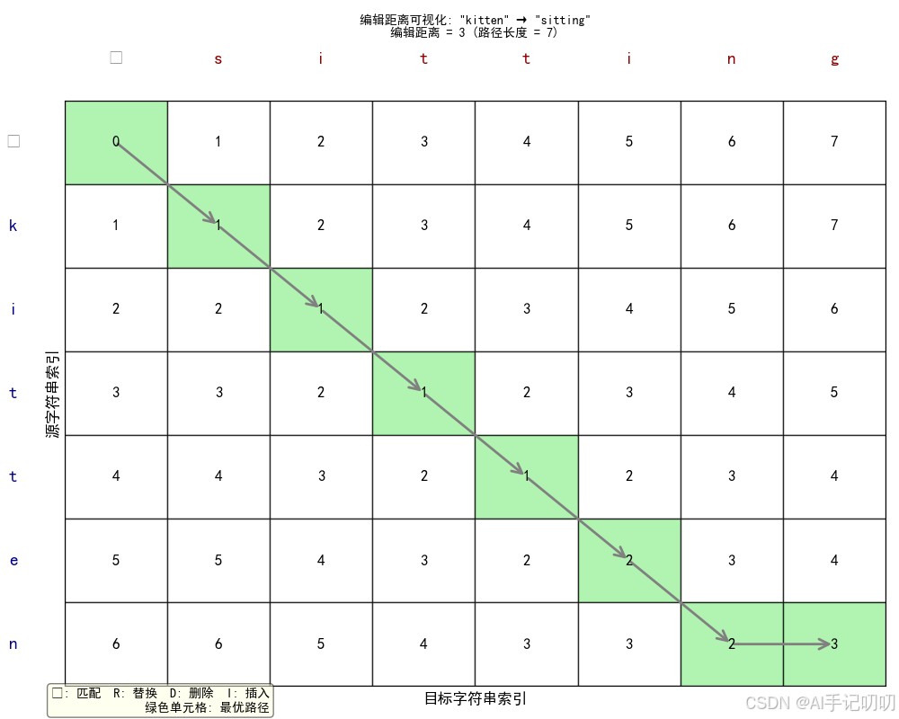 print(f"编辑距离: {edit_distance(s1, s2)}") # 输出: 3