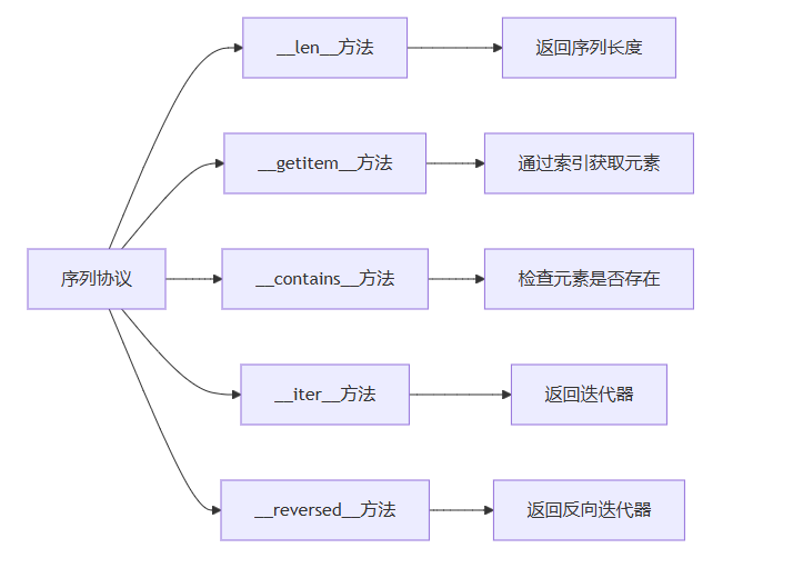序列协议是Python中定义序列行为的约定。任何实现了特定方法的对象都可以被视为序列。这些方法包括: