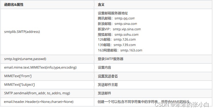 python中对SMTP进行了简单的封装,可以发送纯文本邮件、HTML 邮件以及带附件的邮件。两个核心模块如下: