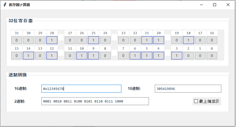 通过点击按钮切换位值,操作简单直观,位值变化时立即更新所有显示,提供即时视觉反馈, 符合程序员的审美习惯,界面整洁有序。