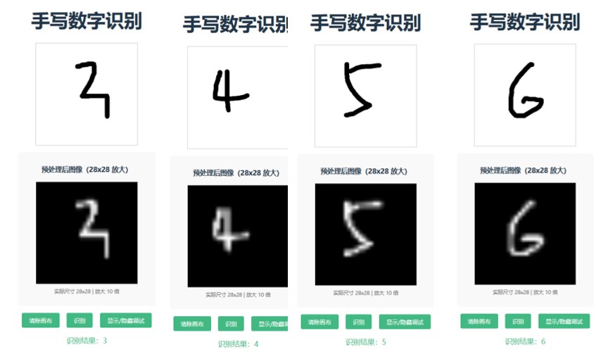 - 前端:提供画布供用户手写数字,完成图像预处理(缩放、灰度转换),发起后端请求并展示结果。