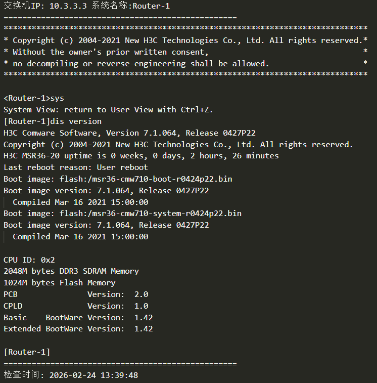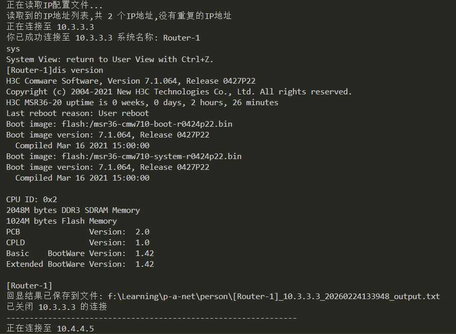sys,dis version命令 - 保存交换机的操作结果到txt文件中,文件名称为