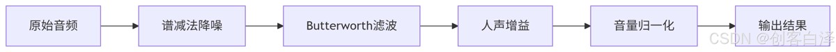 - 智能降噪:采用谱减法+Butterworth滤波器的二级降噪方案