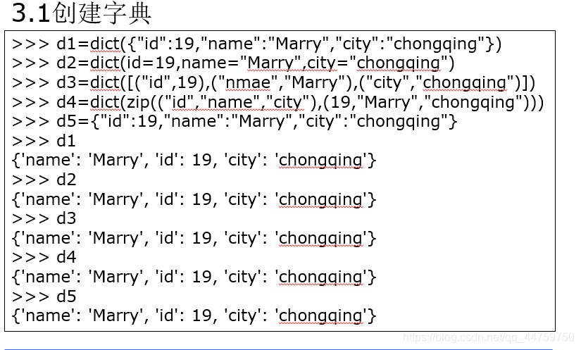 字典是集合不是序列。字典可以看出元素对构成的列表,其中一个元素是键,另一个元素是值。在搜索字典时,首先查找键,当查找到键后就可以直接获取该键对应的值,效率高。