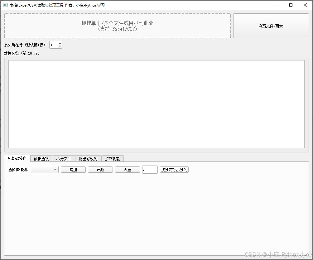 为了提高工作效率,今天我们将手把手教大家使用 PyQt5 和 Pandas 开发一款图形化的表格读取与处理工具。这款工具不仅支持直接拖拽文件加载,还能实时预览,并内置了多种常用的数据处理功能,非常适合零基础办公人员和数据分析师使用!