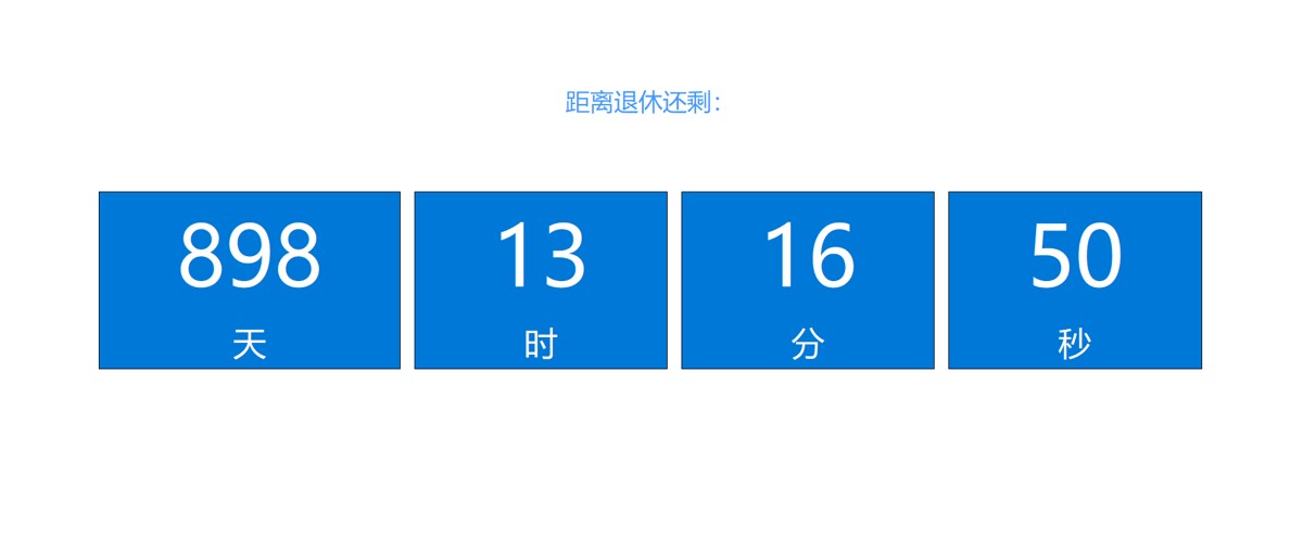- 实时倒计时更新模块:基于系统时间动态计算当前时间与退休日期的差值,实现天、时、分、秒秒级刷新,退休到期后自动归零。
